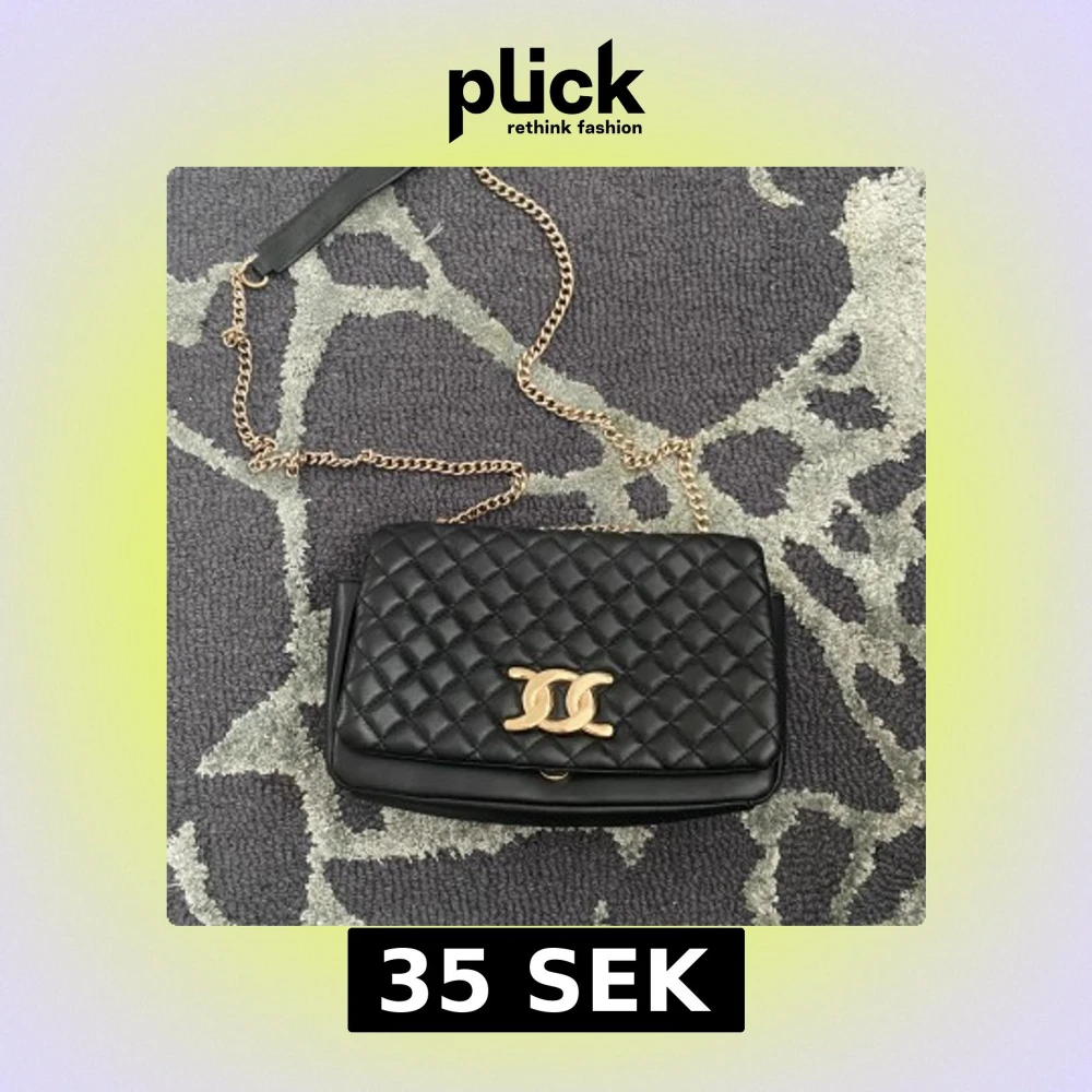 Fin svart handväska med guldfärgat band. Väskan har en praktisk dragkedja inuti för säker förvaring. 💞