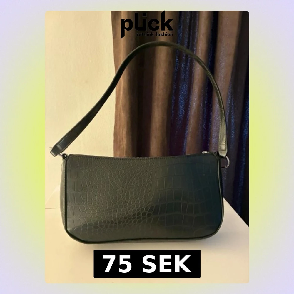 Snygg svart axelväska från H&M med crocopräglat mönster och stilren form. Väskan har ett långt axelband och stängs med dragkedja. Perfekt storlek för det viktigaste och ger en trendig touch till din outfit.