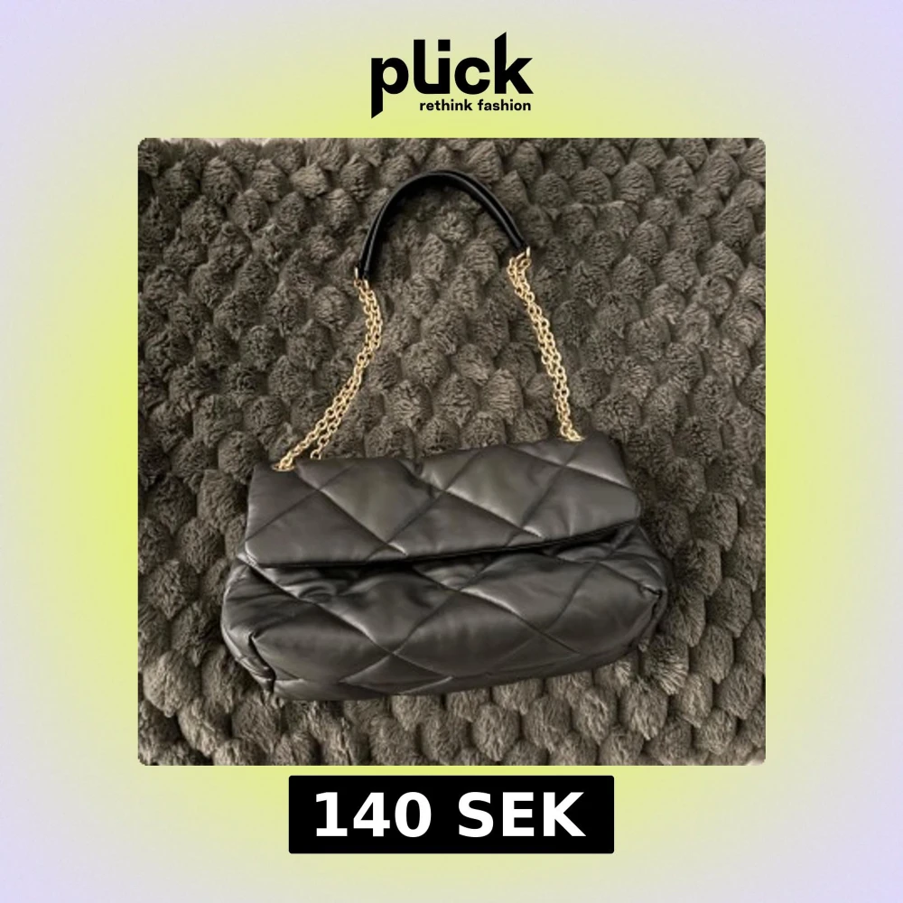 Snygg svart quiltad axelväska med guldfärgad kedja som axelrem. Väskan har en elegant design och är perfekt för att ge en stilren touch till din outfit.