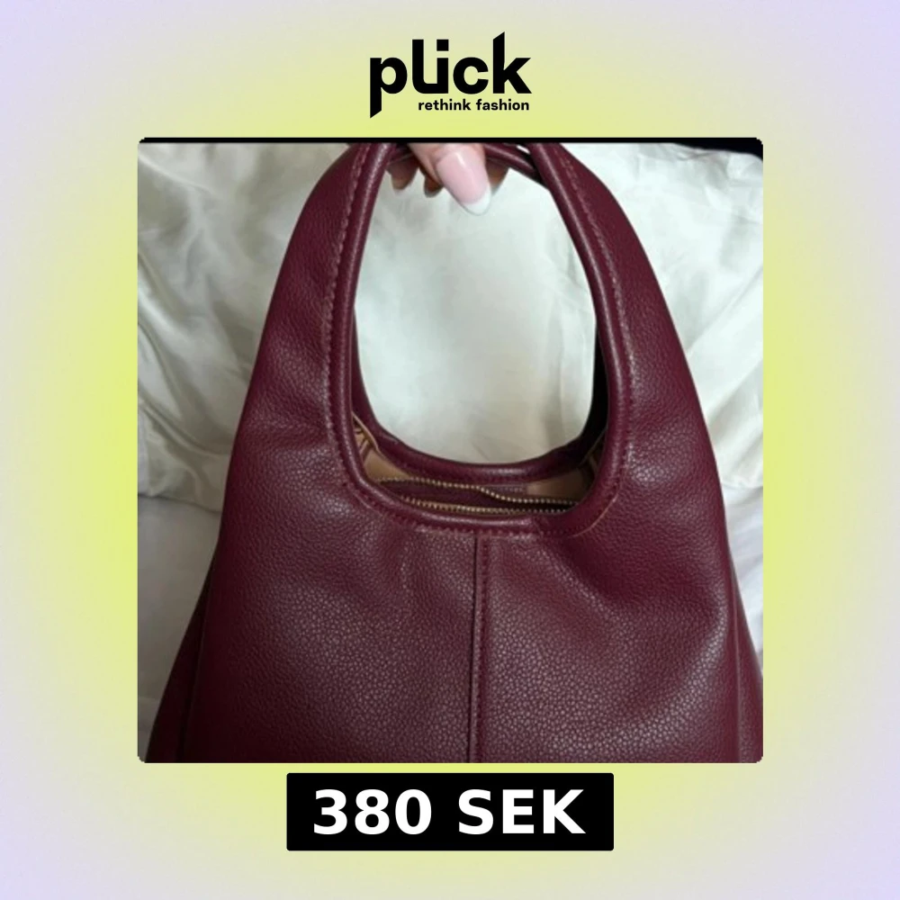 Vinröd axelväska i skinn med dragkedja