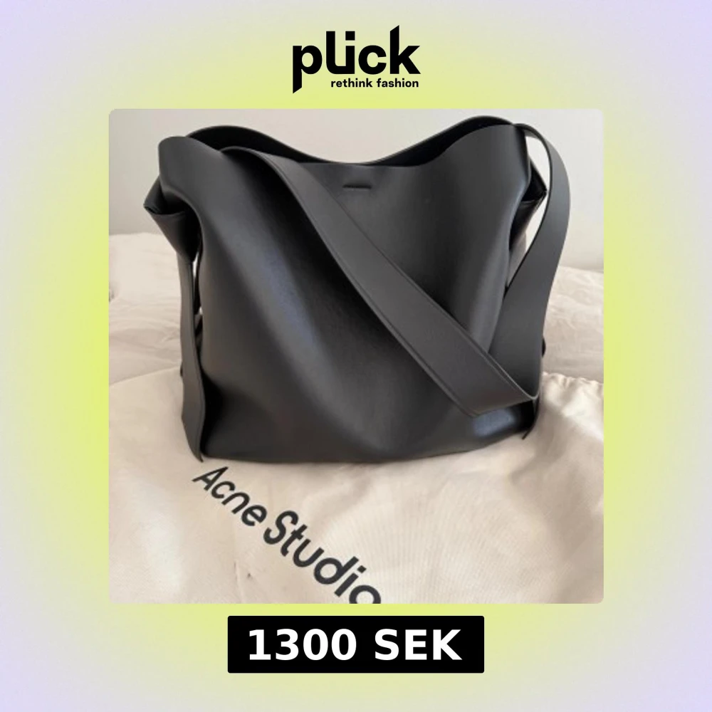Säljer en stilren svart axelväska från Acne Studios i slätt skinn. Väskans modell är MUSUBI MIDI SHOULDER BAG och är en minimalistisk design med bred axelrem och innerficka med dragkedja. Denna midi-axelväska är prydd med tvinnade musubi-knutar på varje sida. Tillverkad av mjukt läder, detaljerad med en präglad Acne Studios-logotyp. Mått: 35 cm; 35 cm; 16 cm. Remmått: 130 cm full längd. Väskan får plats med mycket, en dator får plats. Väskan är i mycket bra skick. Nypris är 18 000 kr.