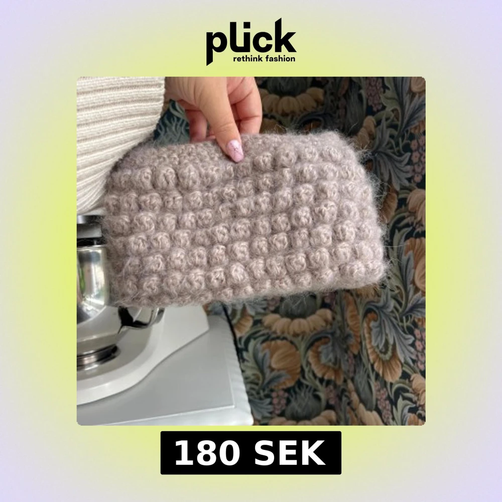Supermysig beige clutch/necessär i virkat material med bubblig struktur. Perfekt att bära i handen och är rymligare än vad man skulle kunna tro. Längd 24cm, höjd 13cm, bredd 3cm. Skriv gärna till mig om du har frågor eller ett prisförslag💕