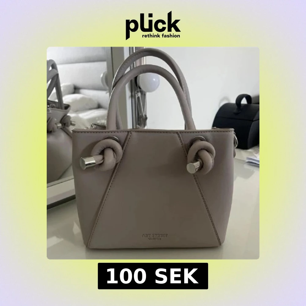 Elegant svart handväska med unika knutdetaljer på handtagen. Väskan har en stilren design och är perfekt för att bära dina nödvändigheter med stil. Den är kompakt men rymlig nog för det viktigaste. Väskan är i svart!! Inte beige
