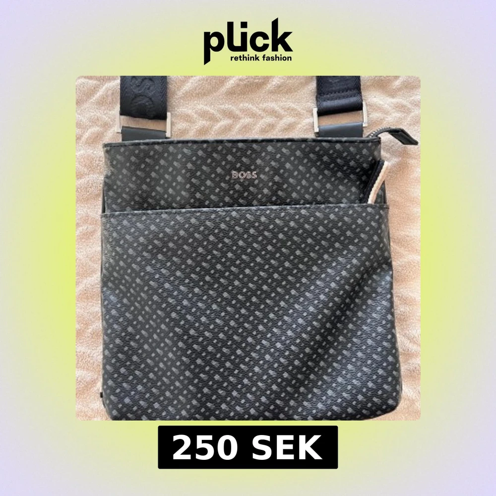 Snygg svart axelväska från BOSS med diskret grått rutmönster och justerbar axelrem med logga. Väskan har dragkedja upptill, innerfack med dragkedja och är tillverkad i slitstark syntet. Perfekt för dig som vill ha en stilren och praktisk väska med premiumkänsla.
