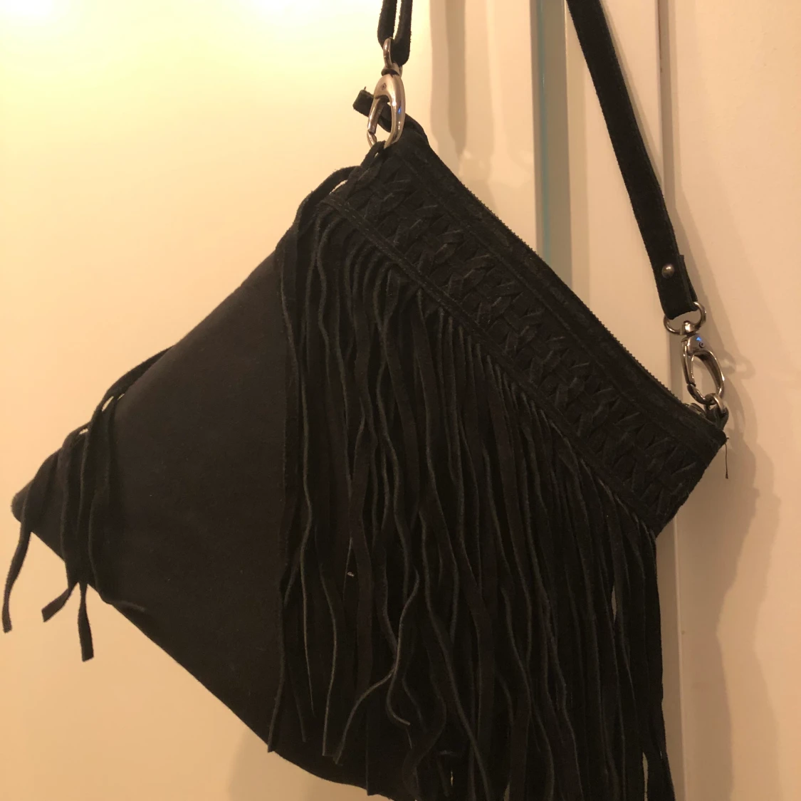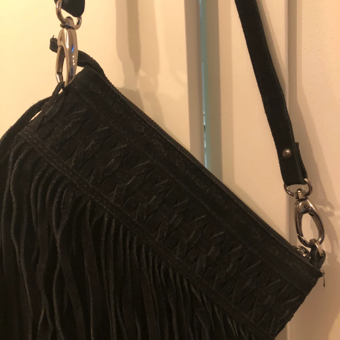 Fringe bag, svart axelremsväska från Indiska med mockadetaljer.