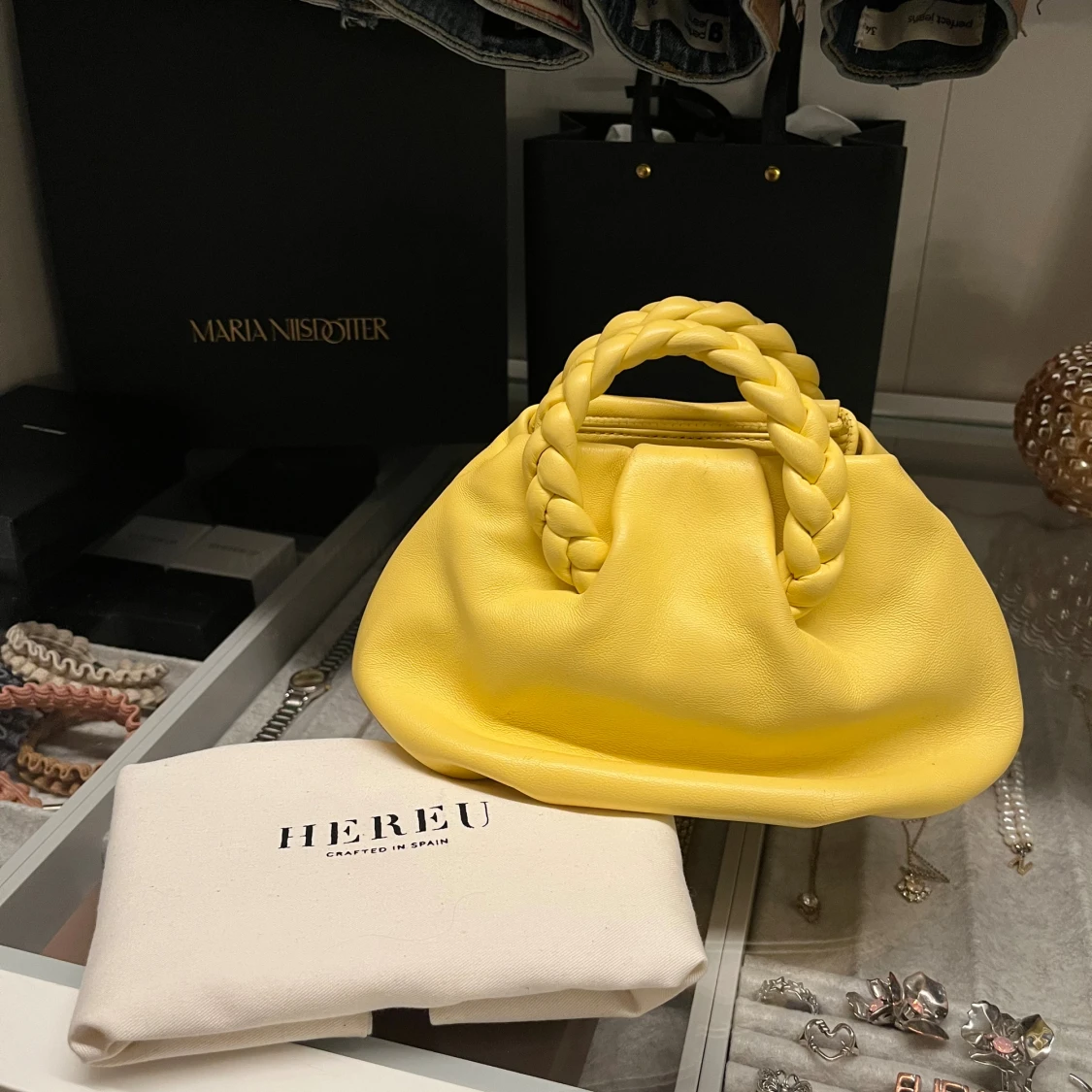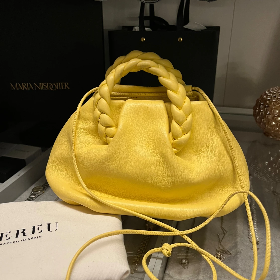 INTRESSEKOLL på min suuuper fina ljusgula väska från Hereu. Köpt på Åhléns för 4850. Använd sparsamt ett fåtal gånger så inga tecken på skador eller så. Färgen syns mest på bild 2!! Den har ett längre crossbody band till och dustbag följer med! SKRIV TILL MIG INNAN KÖP!💛