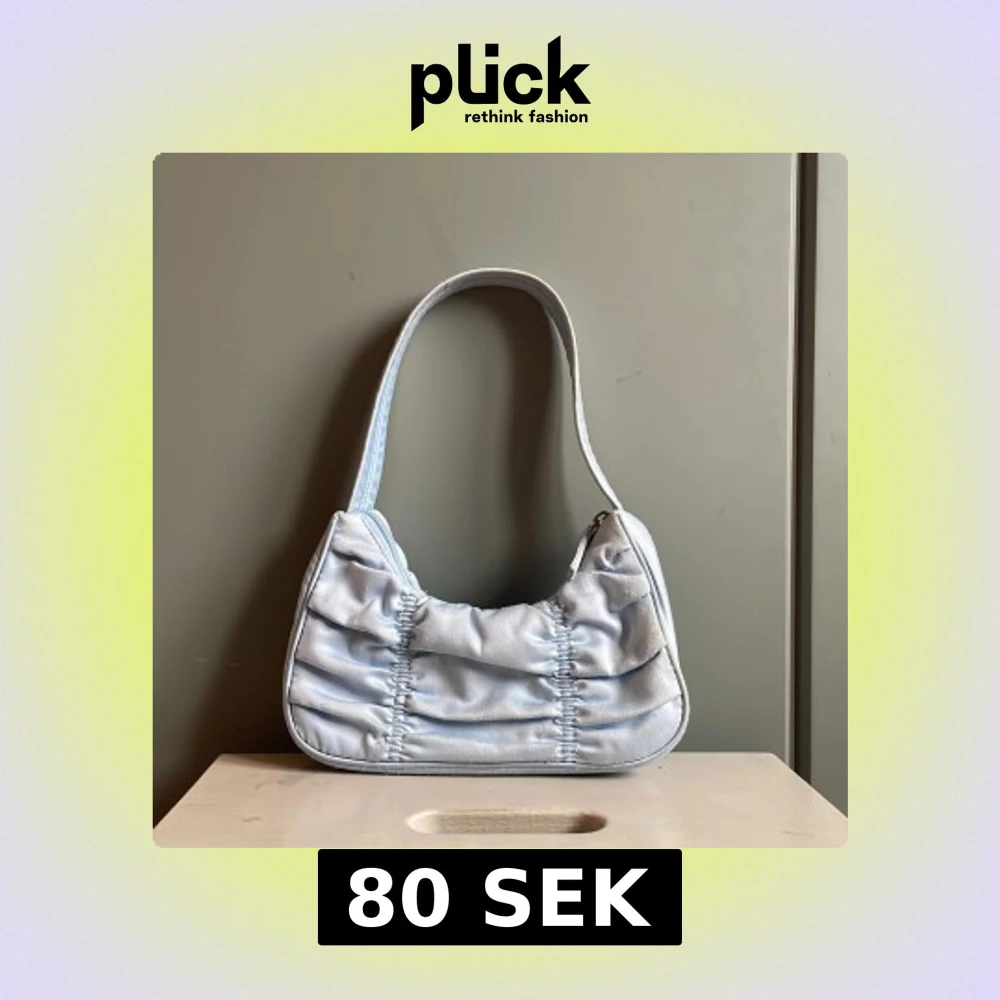 !!!INTRESSEKOLL!!!Supersöt ljusblå axelväska från Monki i glansigt satinmaterial. Väskan har rynkade detaljer på framsidan och en praktisk dragkedja upptill. Insidan är fodrad och har ett extra fack för småsaker. Väskan ser mer babyblå ut än på bilderna. Den är lite nopprig🩵🩵