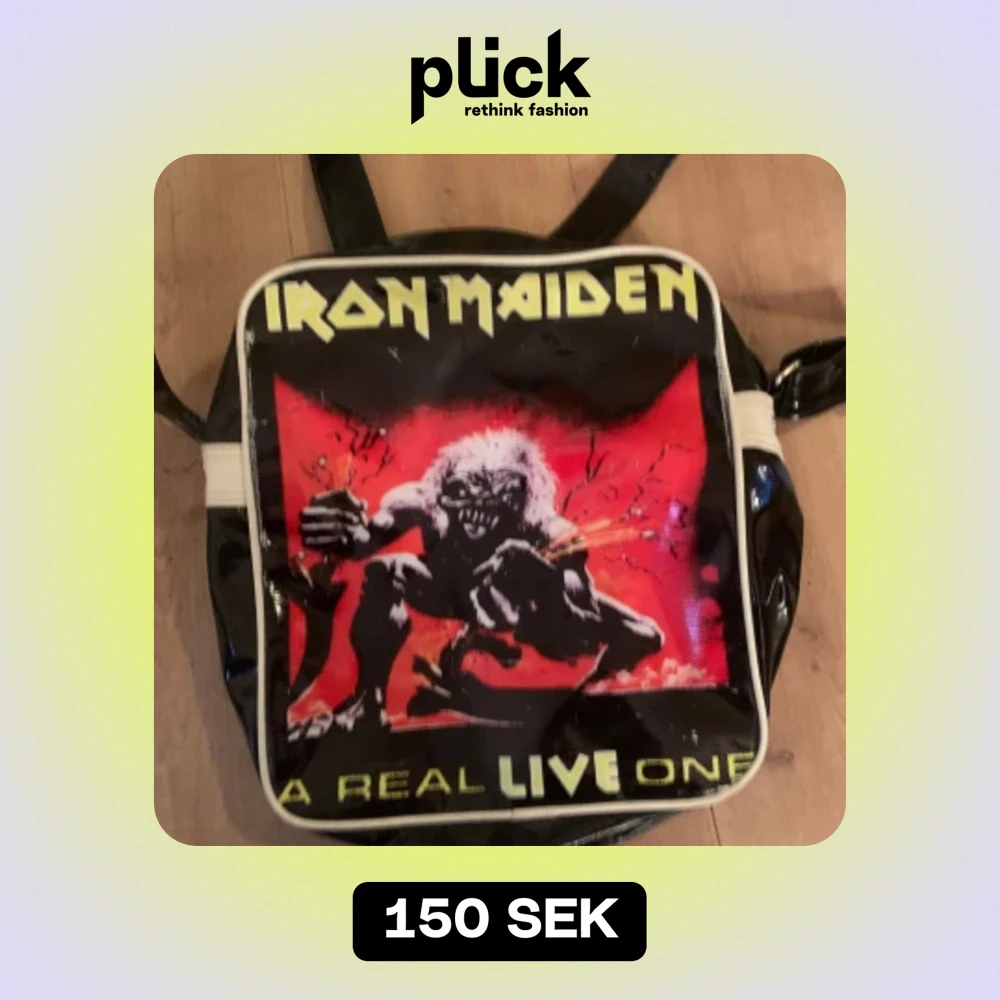 Cool Iron maiden merch ifrån en av deras konserter på 80-90 talet. Ganska använd och dragkedjan är trasig(går att laga). Får plats med mycket i den.