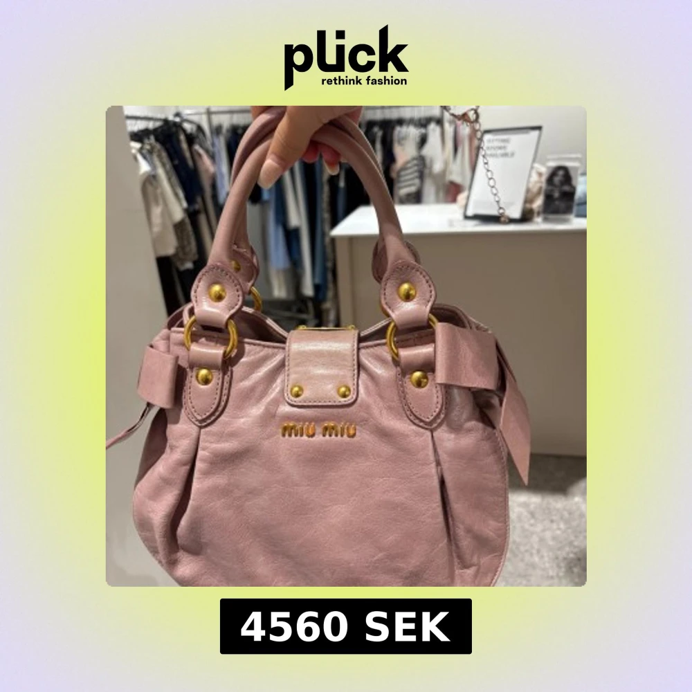 Supersnygg rosa handväska från Miu Miu i mjukt skinn med guldiga metalldetaljer och dubbla handtag. Väskan har dekorativa sömmar och coola ringar i metall samt en diskret logga framtill. Perfekt för dig som vill ha en trendig och lyxig accessoar. Säljer för 6560kr