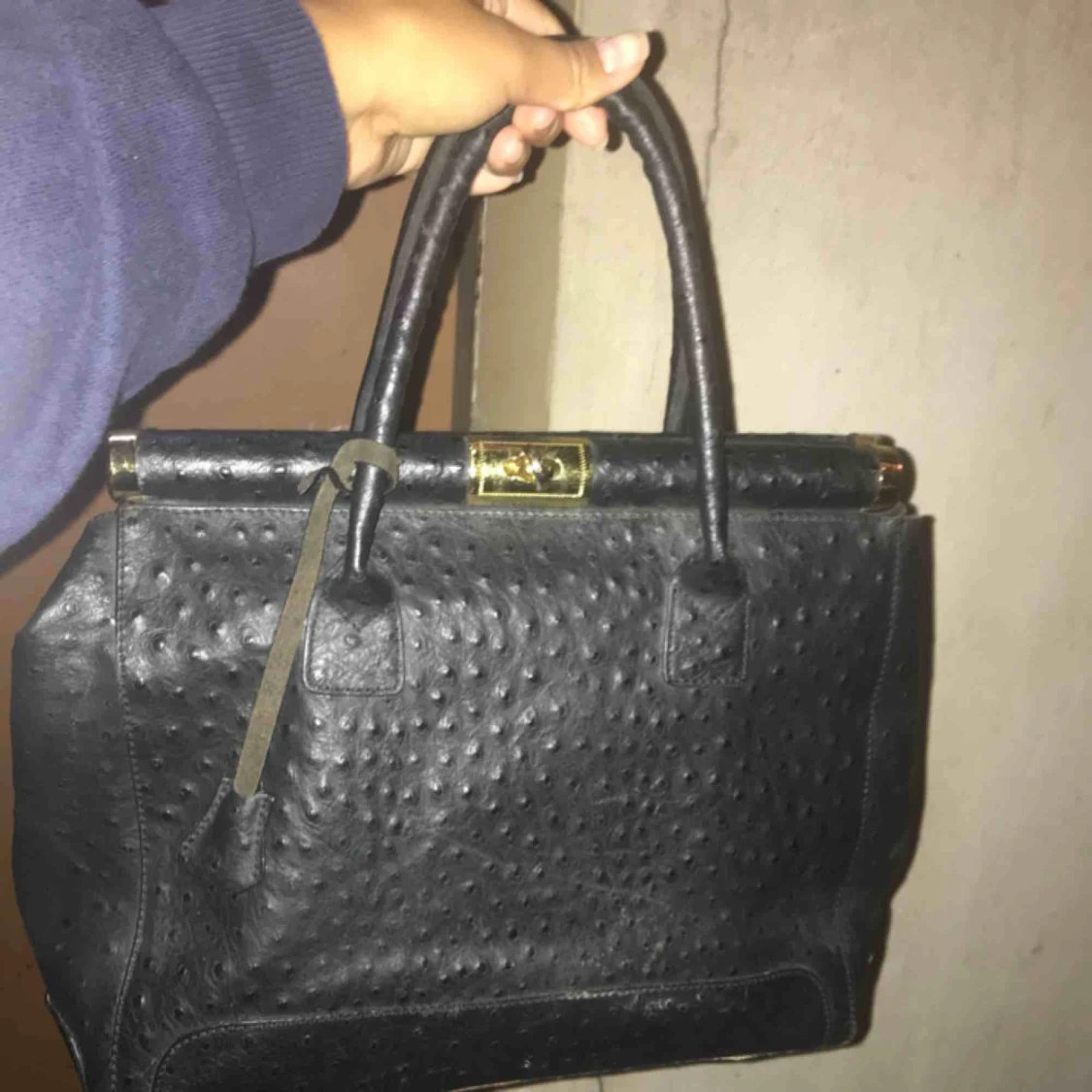 Svart väska i äkta skinn av ett italienskt märke ”Pelle di Lj”. Gulddetaljer.
