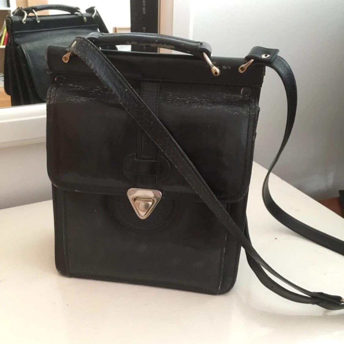 Fin handväska i gediget hantverk från Italien. Mycket fack på fram och baksida. Två med dragkedja. Fattas en liten skruv på ena handtaget men annars i gott skick. Går att laga.