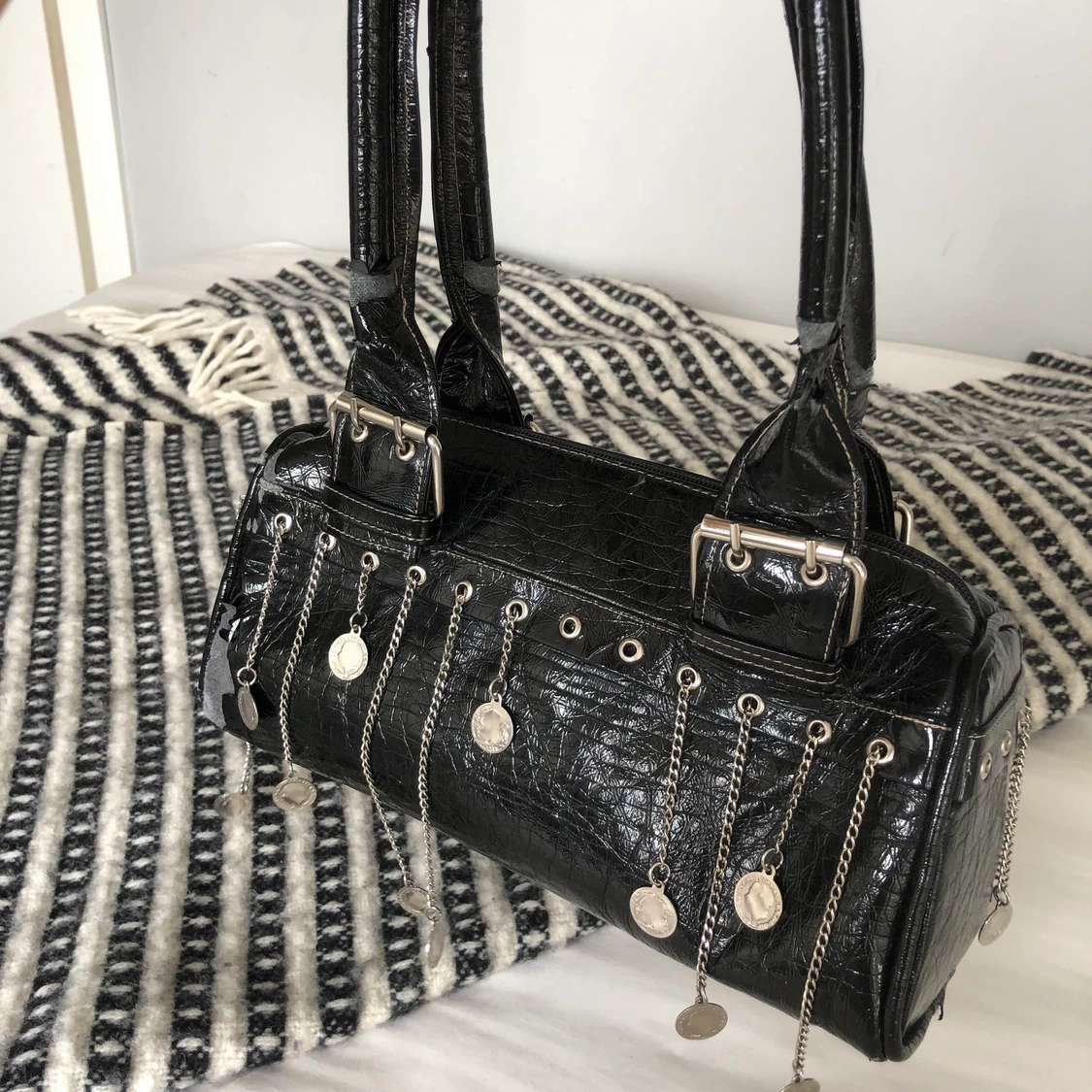 Svart väska, man kan dra på kedjorna då åker dem in eller ut typ? kollar frakt om du är intresserad, KÖP EJ NU!
