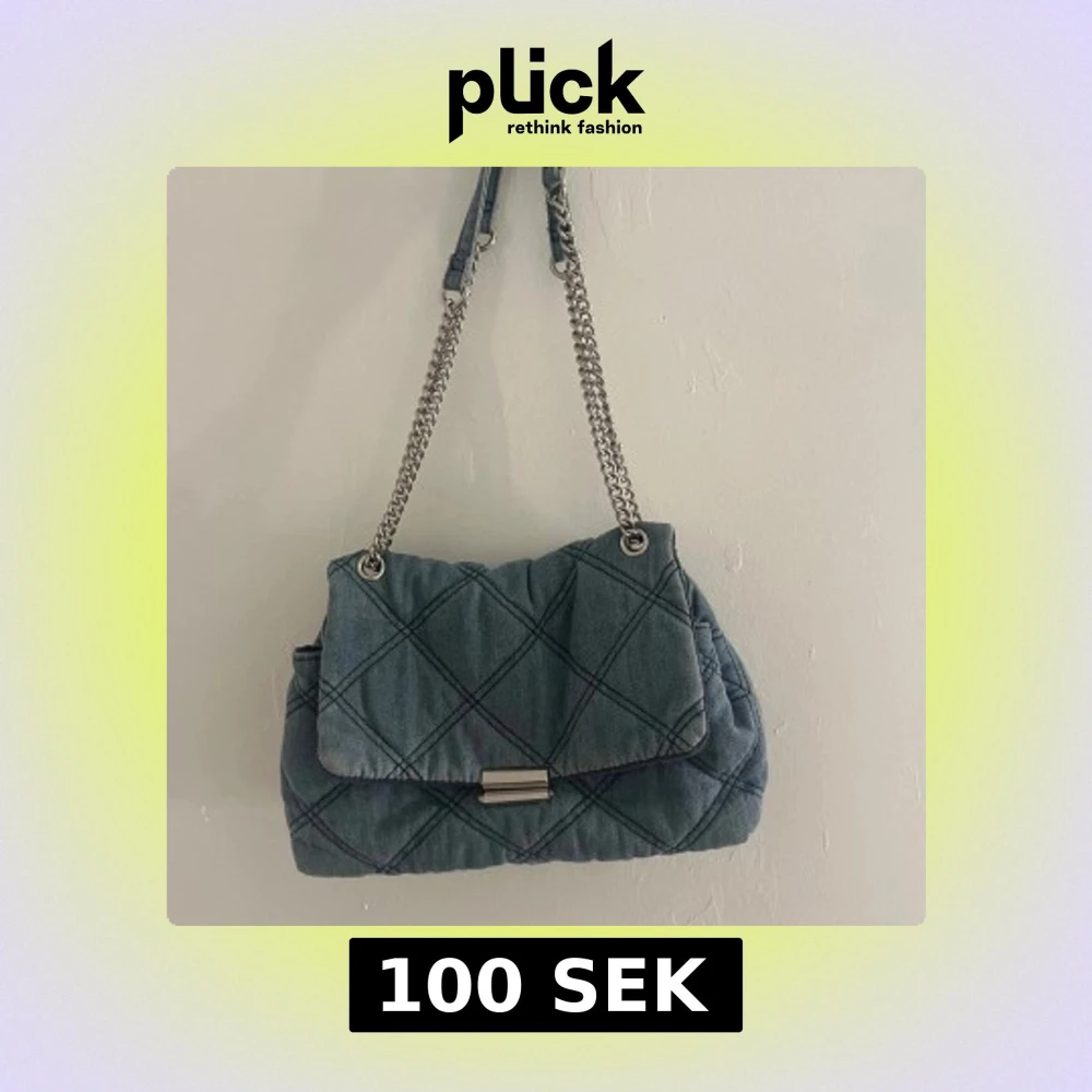 Snygg quiltad axelväska i blått jeanstyg med silverfärgad kedjerem och metallspänne. Väskan har lock med rutmönster och praktiskt innerfack med dragkedja. Perfekt för dig som gillar en cool och avslappnad stil. Jag vet inte vilket märke det är.. priset går att diskutera!💕💕