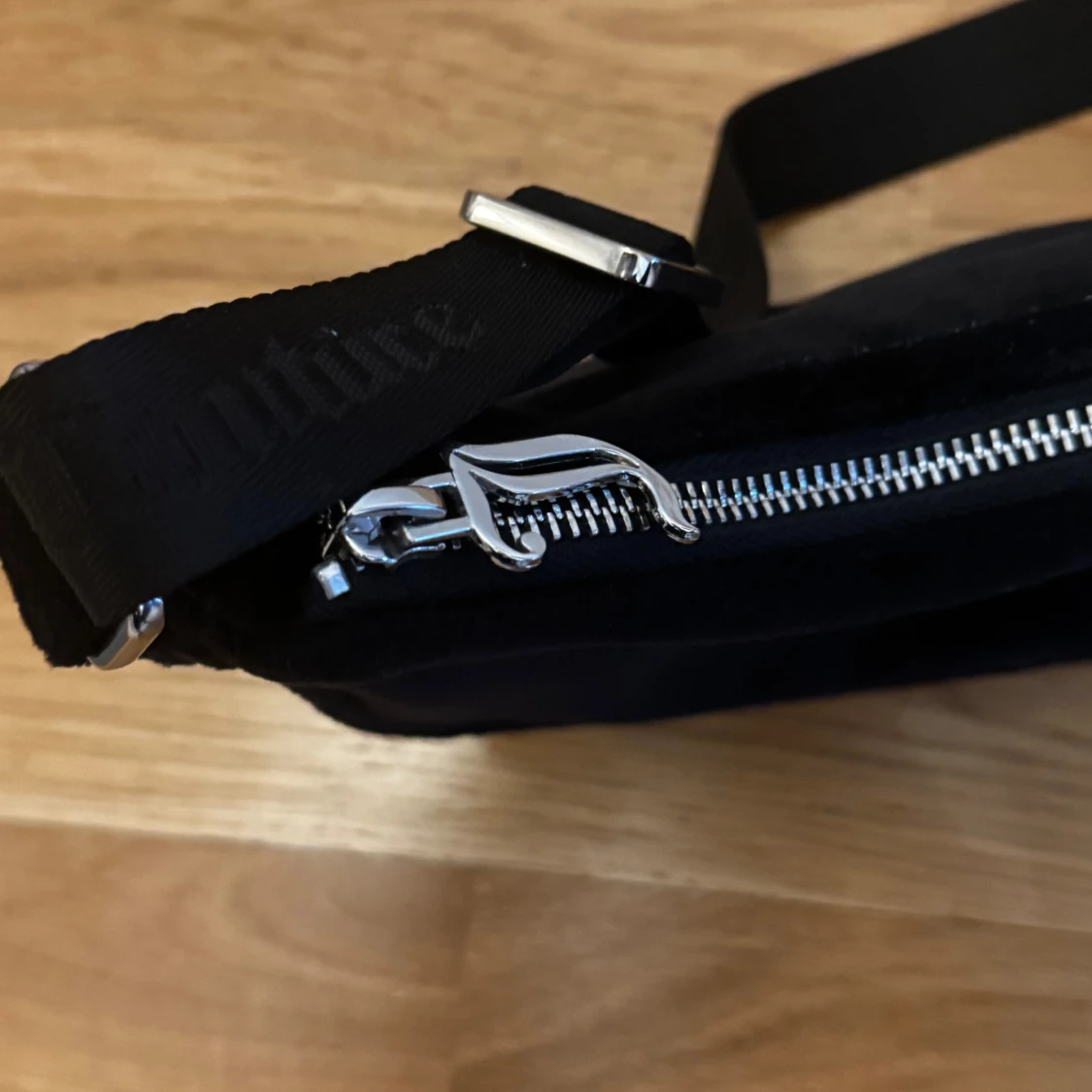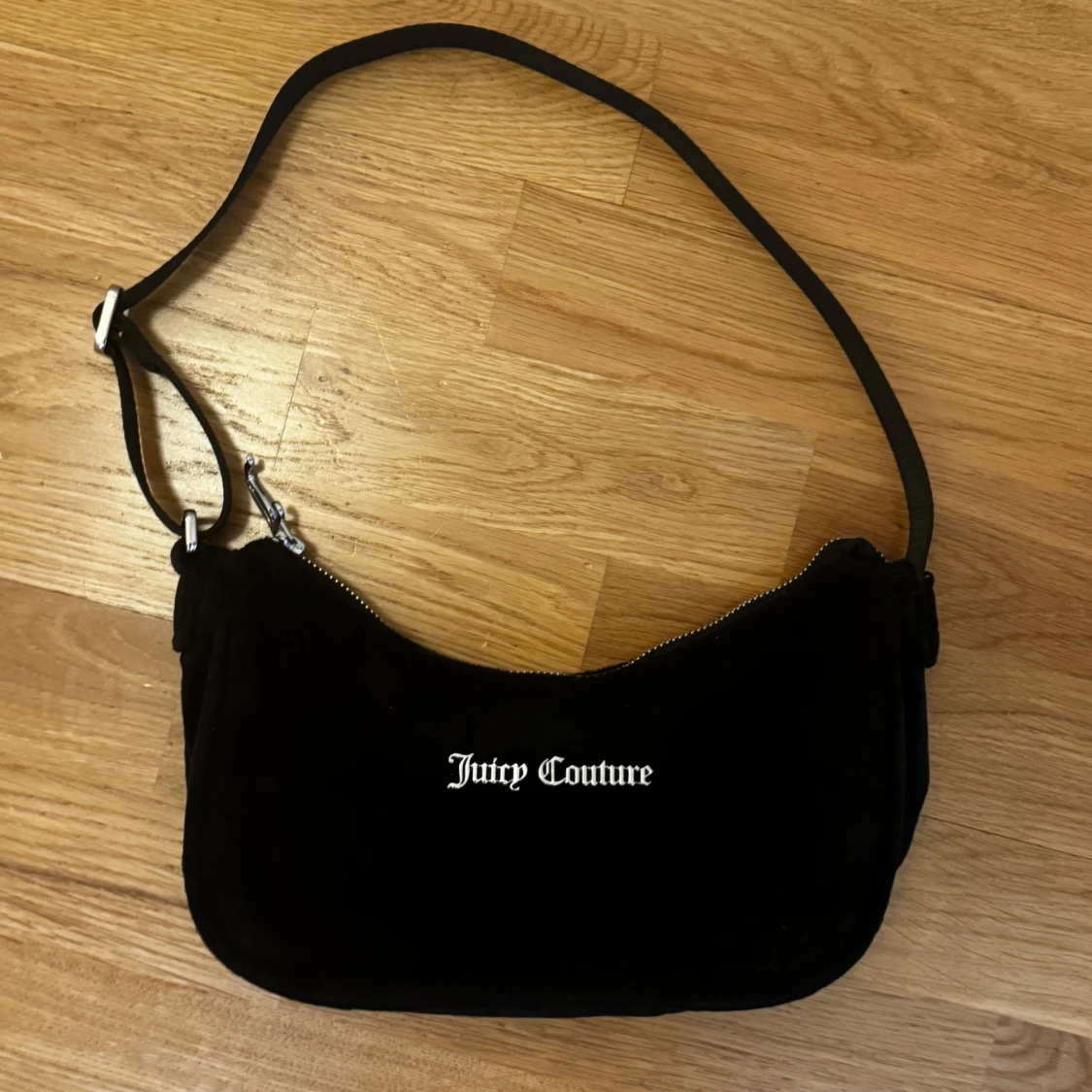 Svart axelväska från Juicy Couture i mjuk sammet. Väskan har justerbart axelband. Inga fläckar eller skador!