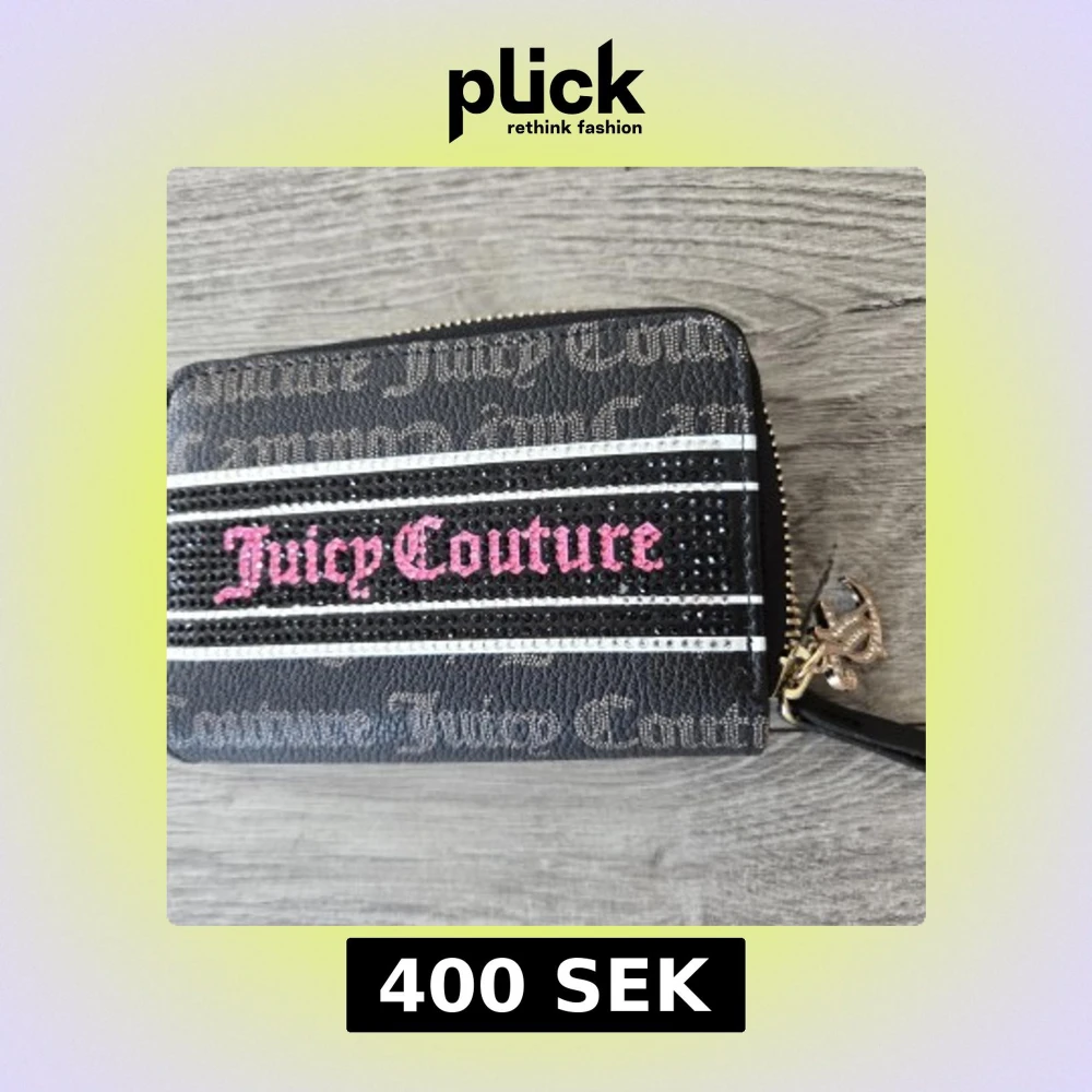 Svart plånbok från Juicy Couture med glittriga strassdetaljer och rosa logga framtill. Plånboken har dragkedja runtom, flera kortfack och fack för mynt. Snyggt mönstrad insida med Juicy Couture-tryck. Perfekt accessoar för dig som gillar bling och streetstyle.
