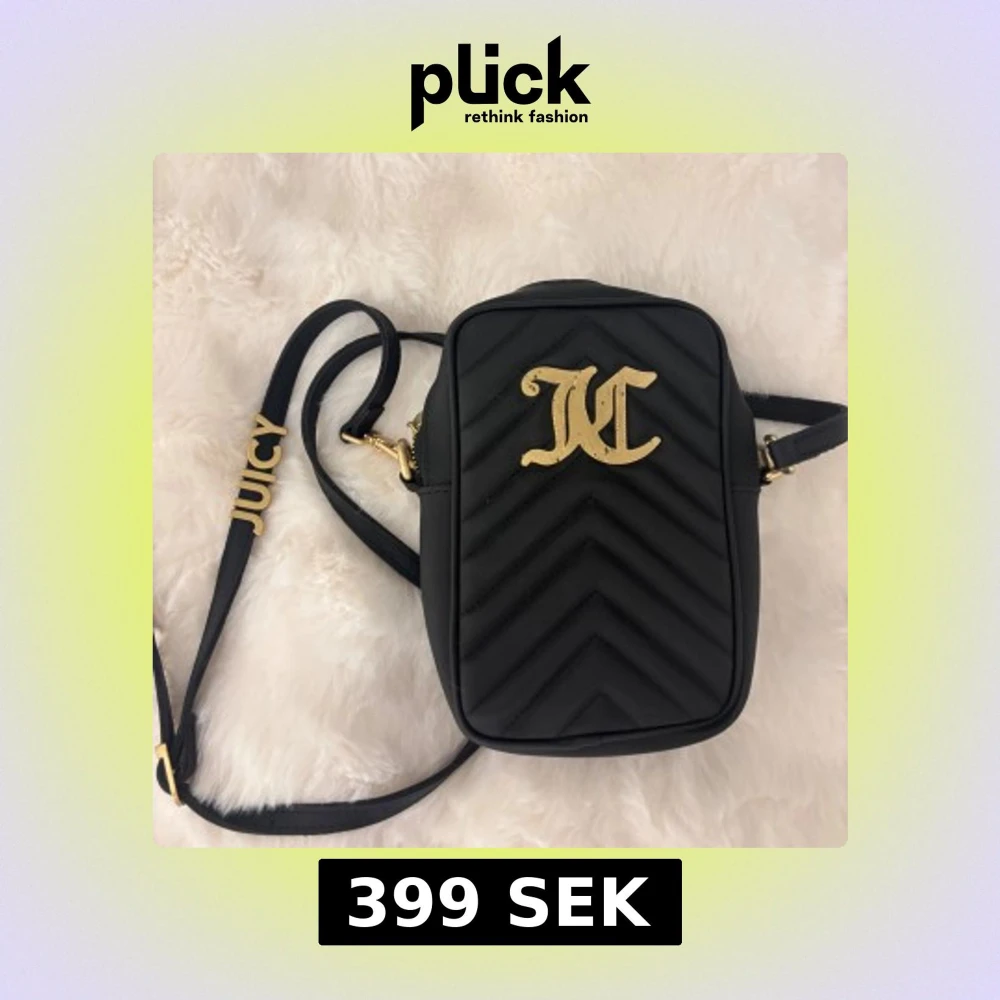 Säljer en svart axelväska från Juicy Couture med quiltad design och guldfärgade detaljer. Väskan har ett stort JC-emblem framtill och justerbar axelrem med Juicy-logga i guld. Perfekt storlek för mobil och småsaker. Den kommer inte till användning längre, så därför säljs den. Dock har den en liten defekt på sista bilden, vet ej om det går bort eller inte. Men annars är den i bra skick. Vid frågor är det bara att höra av sig!💞💞