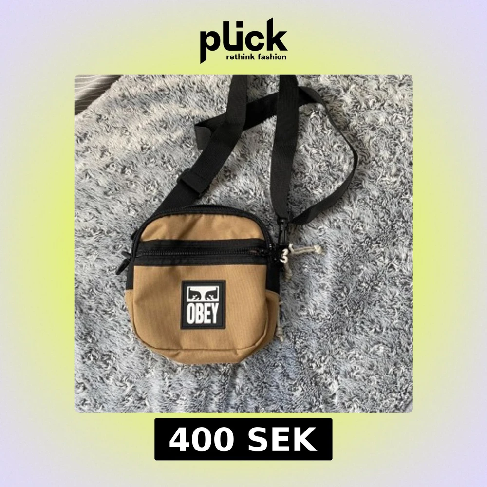 Säljer en caramel grön axelremsväska från OBEY med svart justerbart band som har 5 fack med dragkedja. Helt oanvänd och ny, säljer då jag aldrig kommer ha användning för den. Köpt på zalando för 799kr och som dessutom är slutsåld.💕