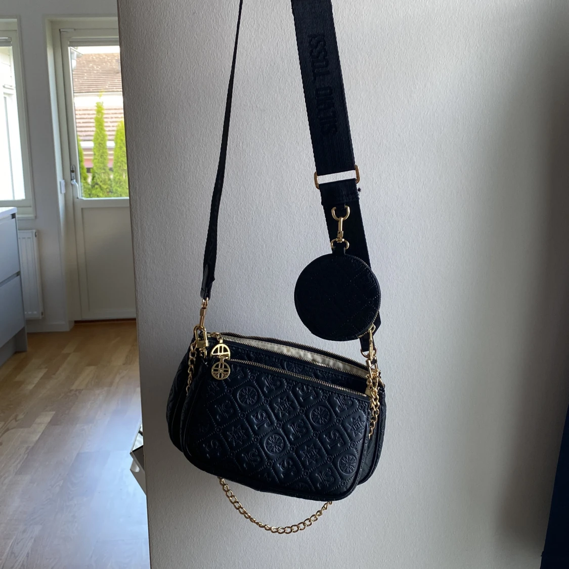 Axelremsväska i äkta skinn från Silvio Tossi. Sparsamt använd men finns en fläck invändigt på tyget.