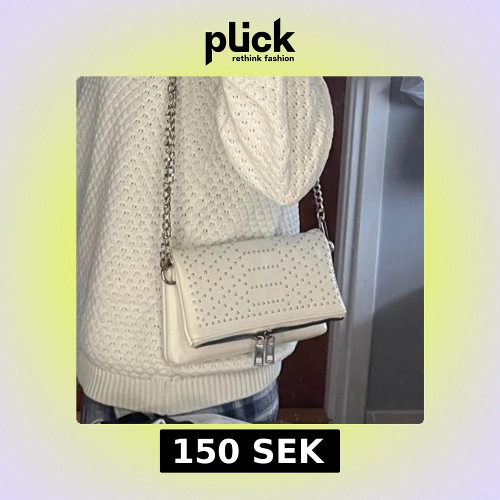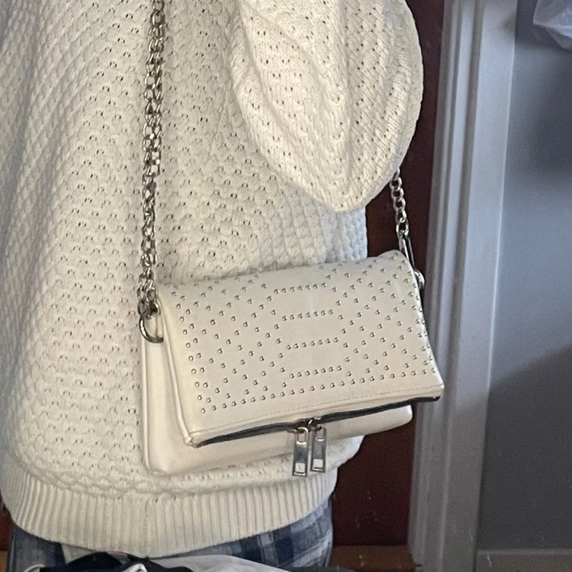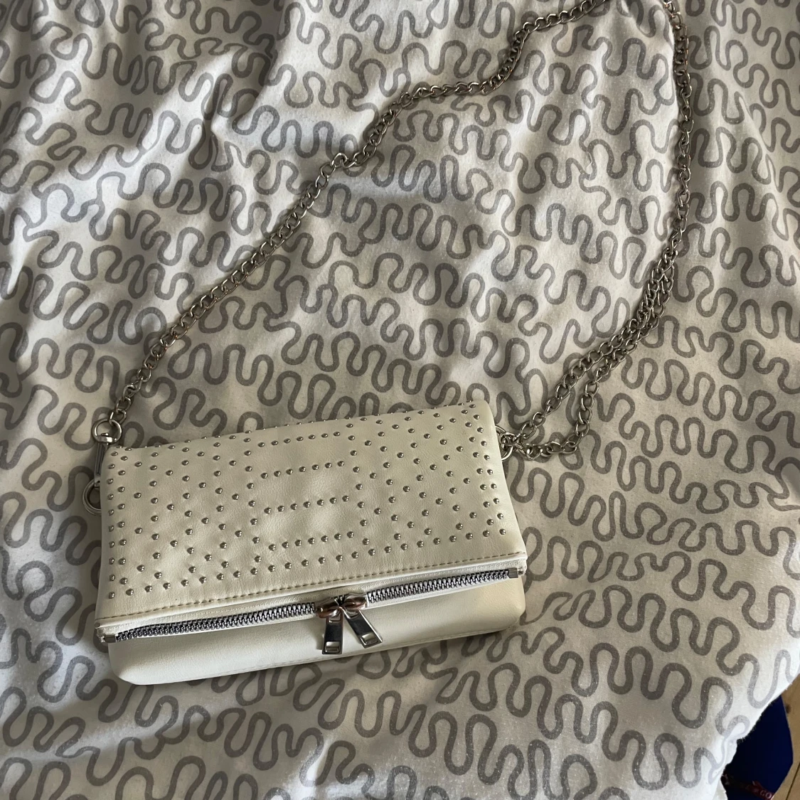 Snygg vit axelväska från Even&Odd med silverfärgade nitar och kedja. Jätte jättefin verkligen älskar den men använder inte så mycket längre
