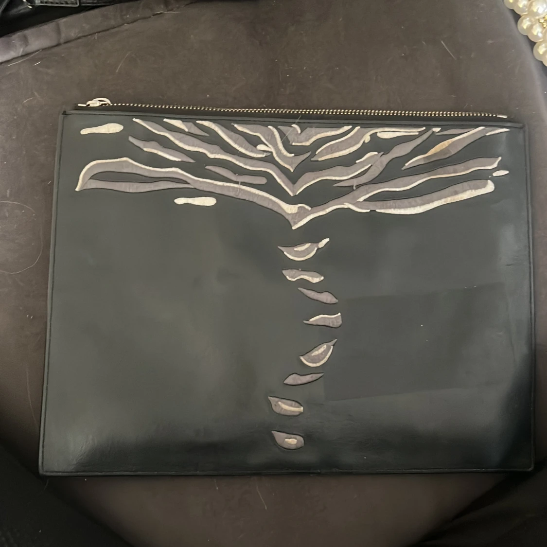 Riktigt skinn, har någon litet fläck på baksidan som säkert går bort om man gör rent den.
