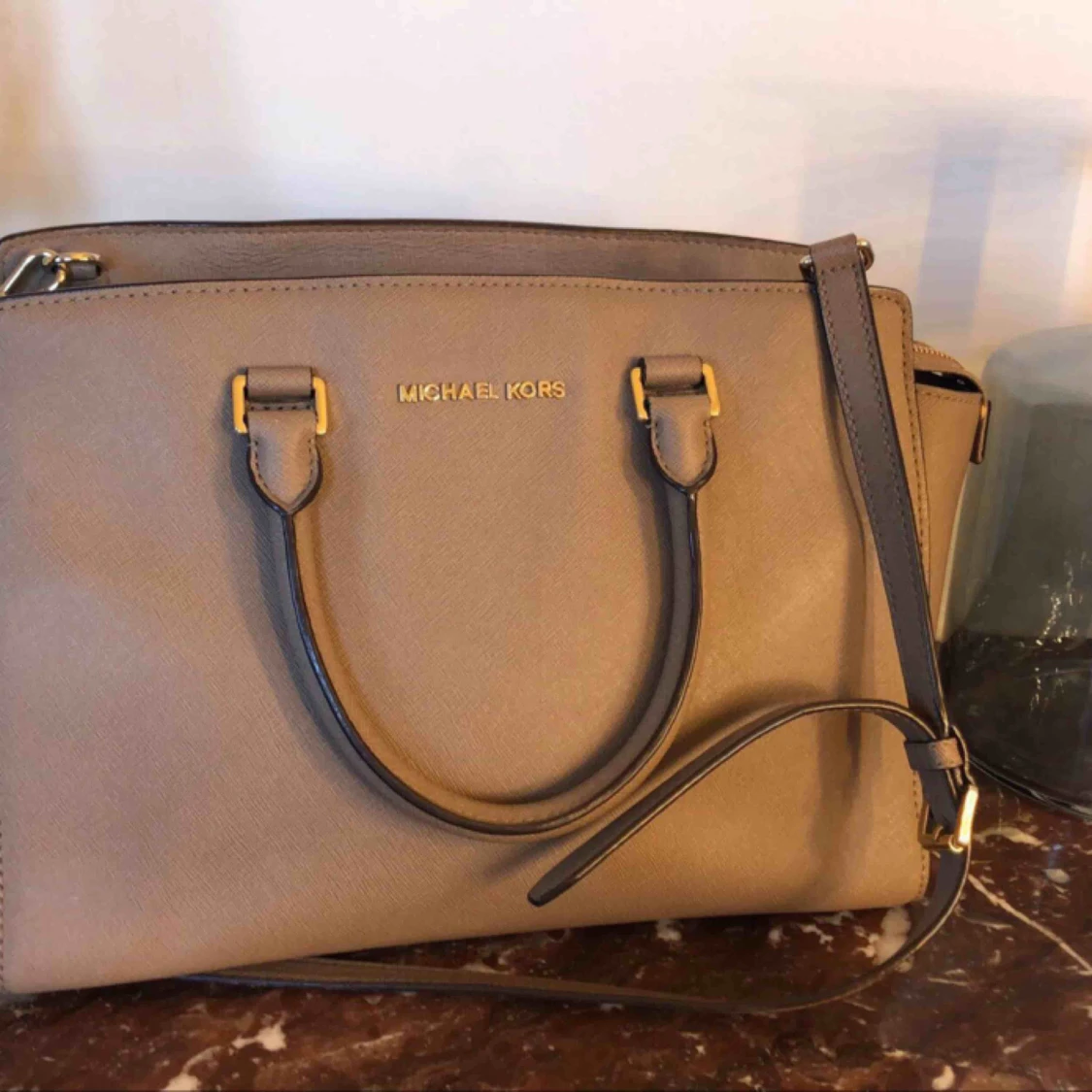 Lägger ut igen pga oseriös köpare. Äkta Mk-väska i modellen Selma med en beige färg. Köpt för ca 3500 för ca 2 år sedan men säljer för 250 eftersom välanvänd + inget kvitto