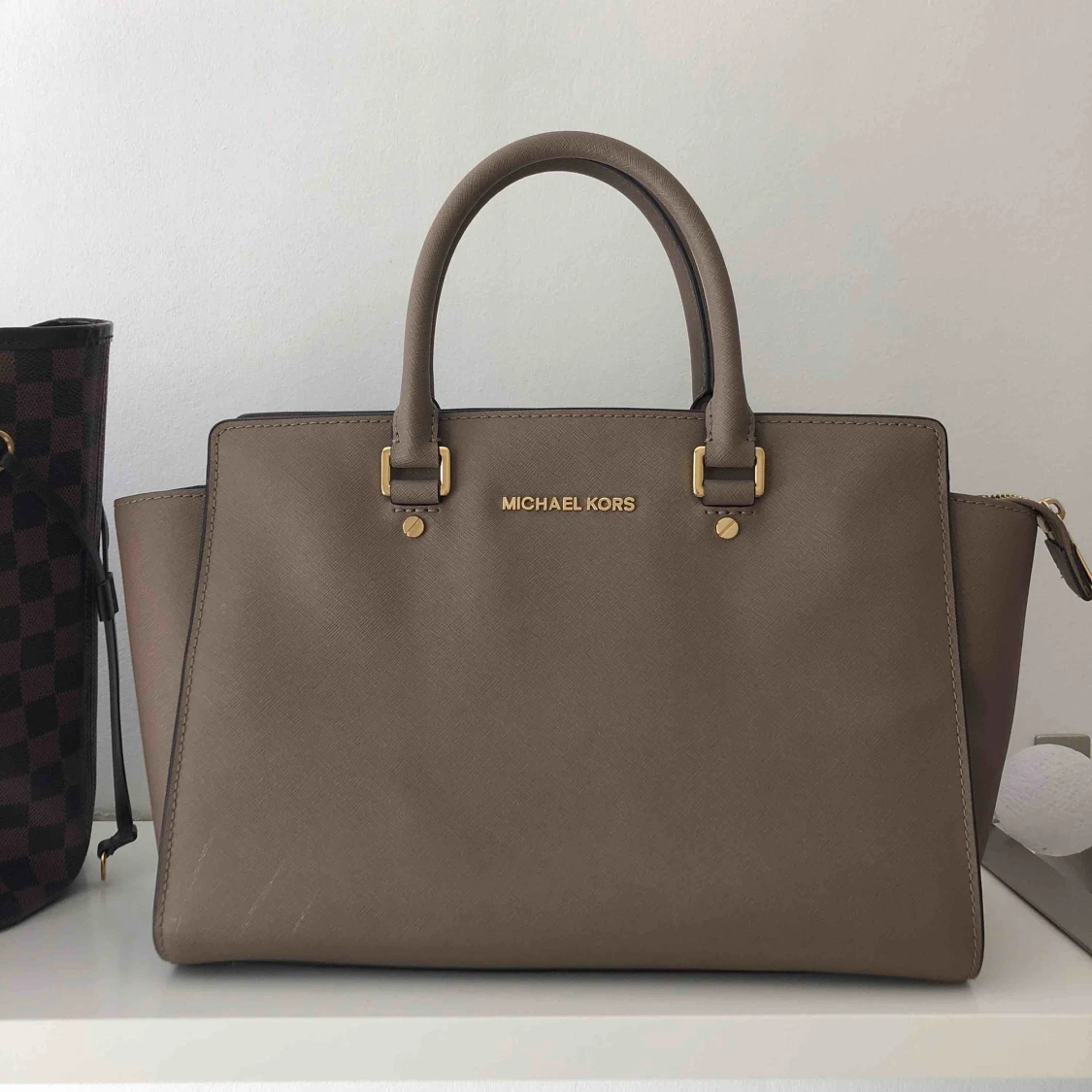 Äkta Michael kors väska, (Selma Large saffiano leather satchel) i strålande skick bortsätt från 3 minimala repor i nedre hörnet. Nypris: 3600kr. Pris exklusive frakt