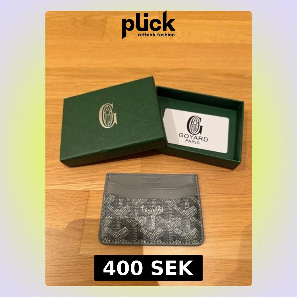 Snygg korthållare i grått skinn med klassiskt mönster och gul insida. Perfekt för kort och cash, med flera fack och stilren design. Kommer med original ask och kort.