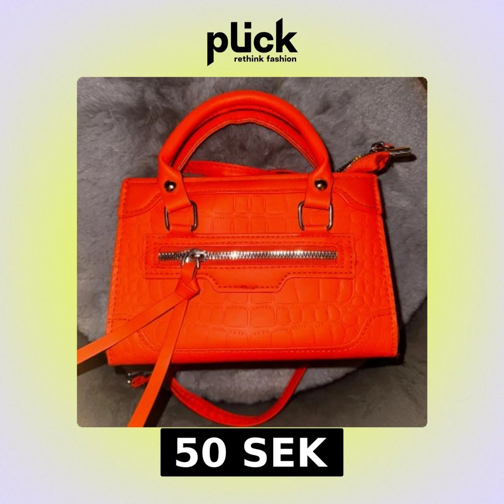 Snygg orange handväska med krokodilmönster och silverfärgade dragkedjedetaljer. Väskan har både handtag och en avtagbar axelrem. Aldrig använd, en liten tråd som sticker ut jätte lite (se bild ovan)