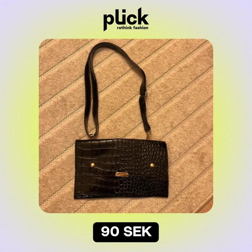 Så snygg liten väska i krokodil med justerbart band. Aldrig använt den!