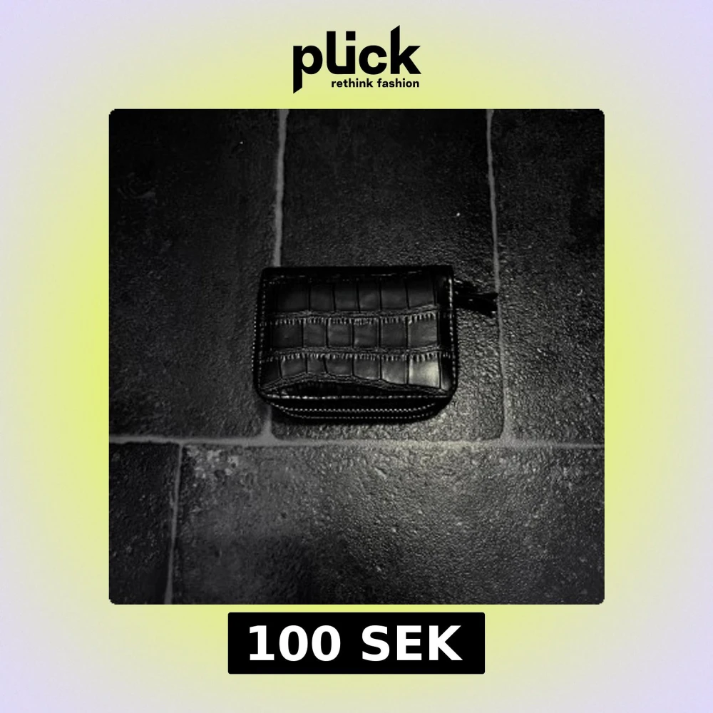 svart plånbok med krokodilmönster och dragkedja. Perfekt för att hålla ordning på kort och kontanter <3 flera fack för enkel organisering