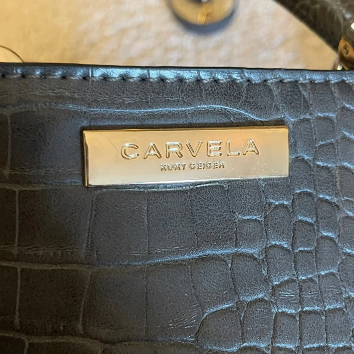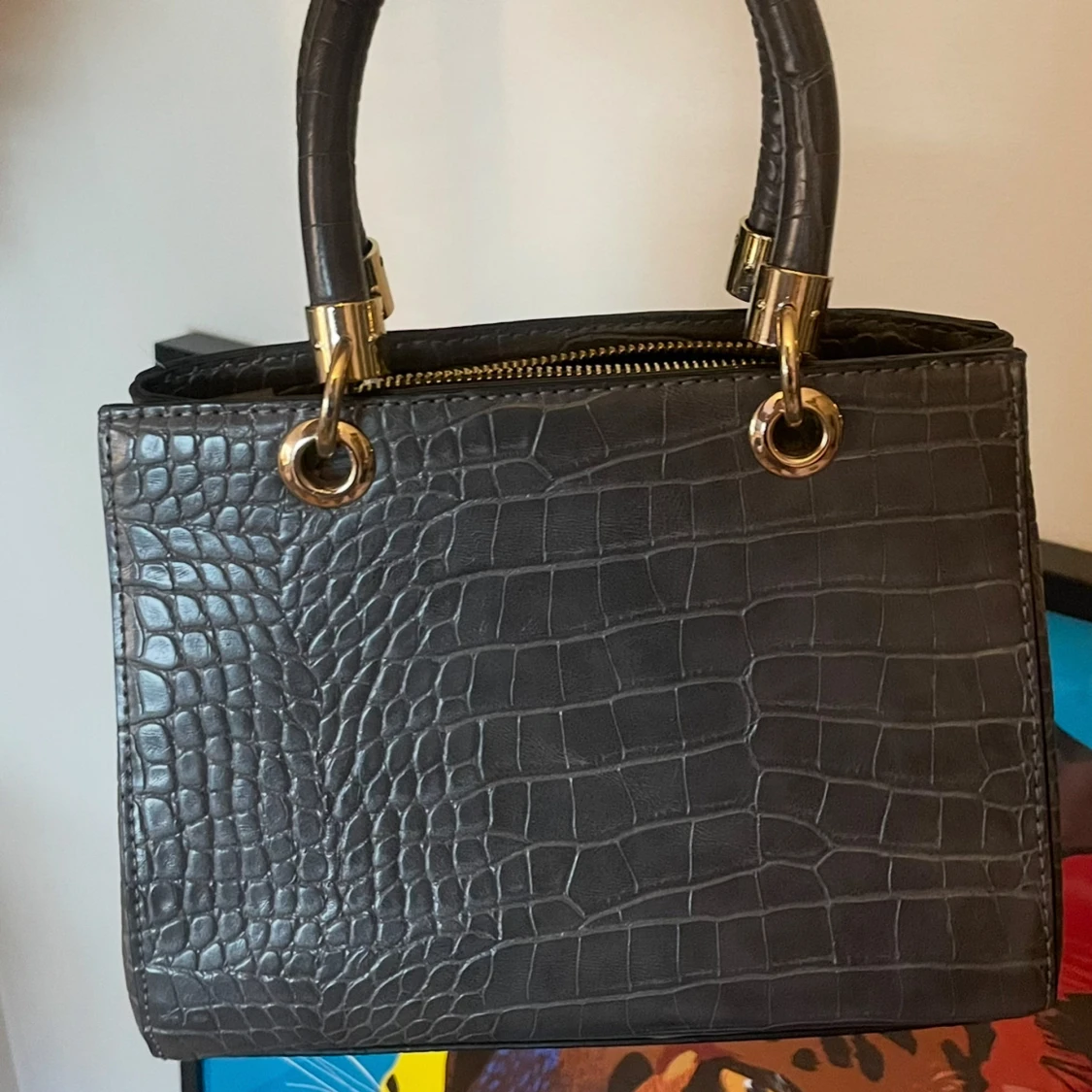 Superfin kurt geiger väska med gulddetaljer och krokodil liknande mönster Tillhörande axelband finns Dragkedjan har tyvärr gått sönder(därav priset)men det finns knappar som man kan stänga med så inget som påverkar självaste funktionen😊