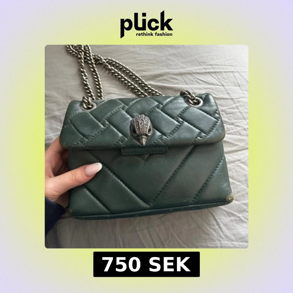 Super fin grön axelväska från Kurt Geiger med quiltad design och silverfärgad kedja. Väskan har ett dekorativt spänne framtill och magnetlås. Den har sina defekter vilket man kan se på bilderna därför är priset ganska lågt. Nypris ligger på 2000❤️