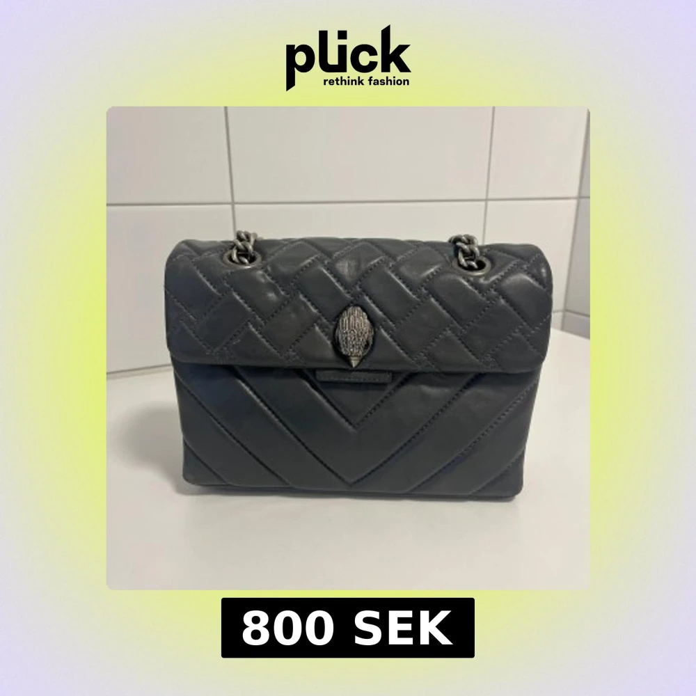 Snygg grå handväska från Kurt Geiger i quiltat skinn med silverfärgad kedjerem i den större modellen. Uppriven på tyget inuti och därav priset