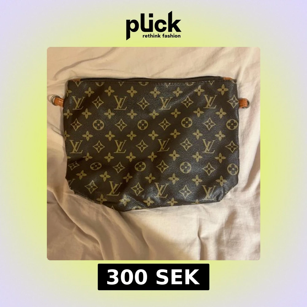 kuvertväska klassiskt monogrammönster. Väskan är brun blommor, tillverkad i skinn med dragkedja upptill och detaljer i läder. Perfekt för dig som vill ha en ikonisk accessoar med lyxig känsla.