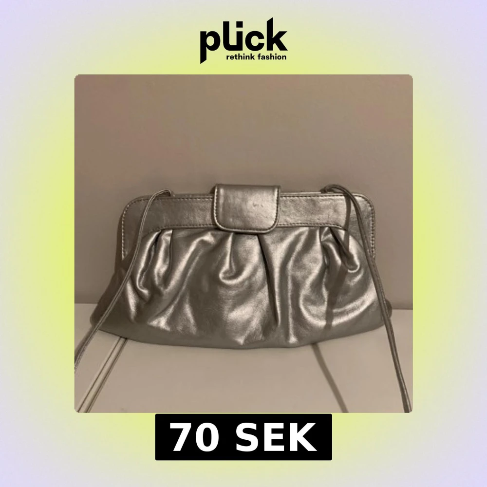 Snygg axelväska i metallic silver från Accessories by Wedins. Väskan har ett veckat framparti, lång axelrem och stängs med ett lock. Perfekt för dig som vill sticka ut med en glansig accessoar. Rymmer mobil, plånbok och småsaker. Väskan har några små defekter och märken så skriv om frågor!