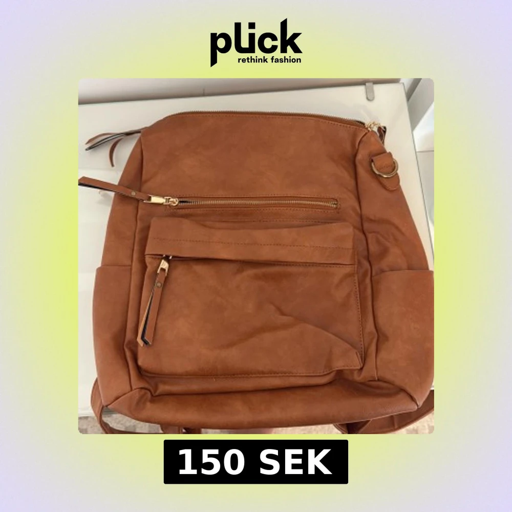 Snygg brun ryggsäck i skinnimitation med flera fack och guldfärgade dragkedjor. Väskan har både handtag och justerbara axelremmar, samt praktiska ytterfickor. Perfekt för dig som vill ha en stilren och rymlig väska till vardagen.