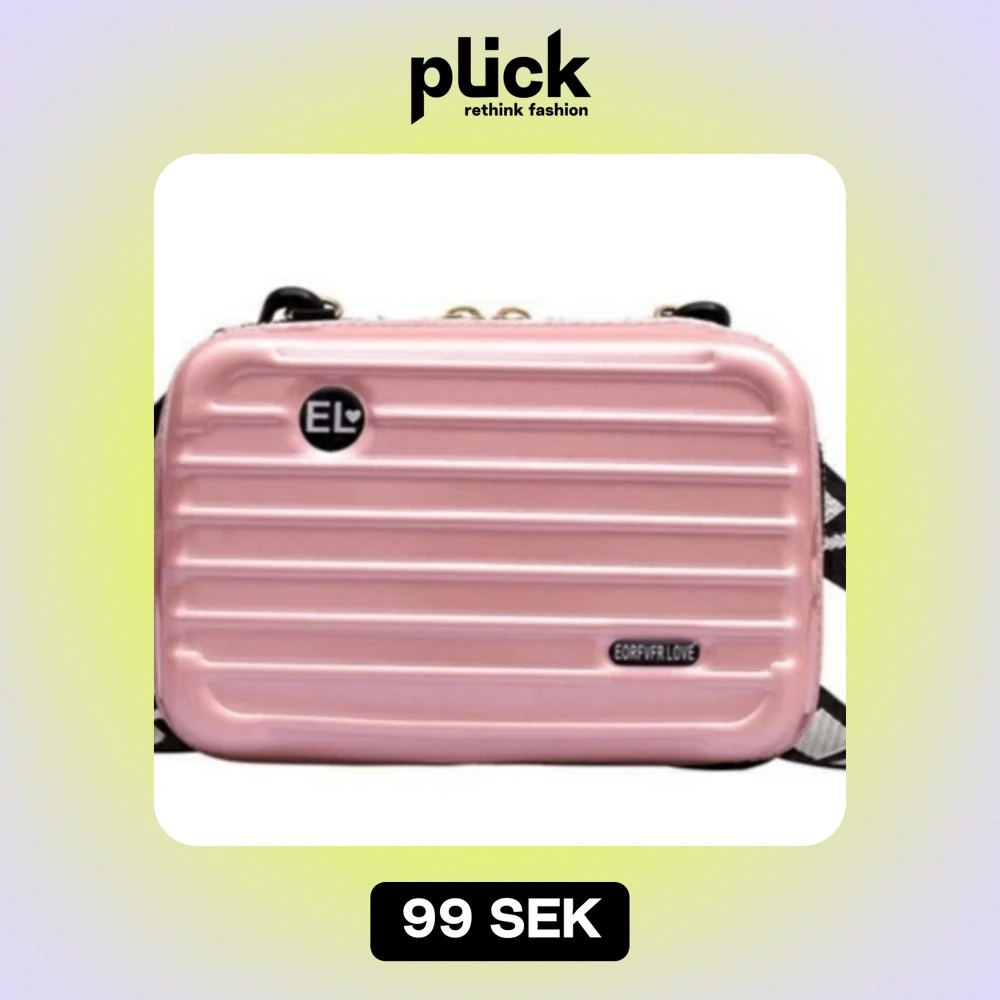 Liten väska i rosa där man får plats med det allra nödvändigaste. Måtten på väskan är: 18 × 12 cm, Djupet är ca 5 cm.
