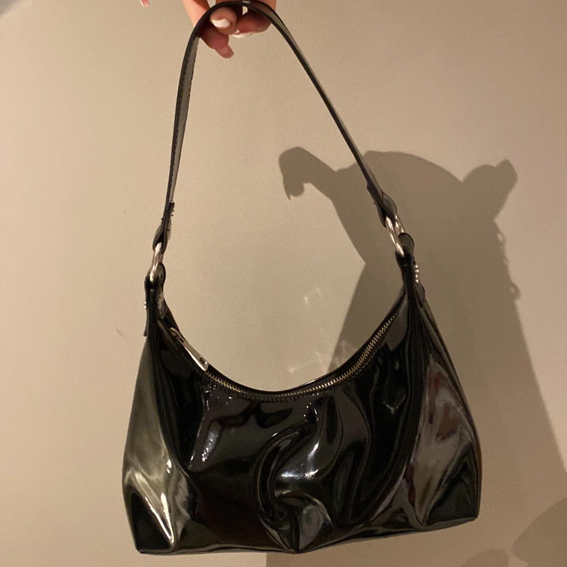 En lackväska från Gina, bra skick förutom en liten skada, har bra plats och är den perfekta axelväska💗💗 sänker såklart priset på dem pågrund av den lilla skadan💓💓