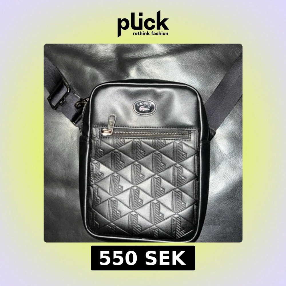 Snygg svart axelväska från Lacoste i skinn med präglat geometriskt mönster. Väskan har justerbar rem, dragkedja framtill och diskret Lacoste-logga. Perfekt för att bära det viktigaste med stil.