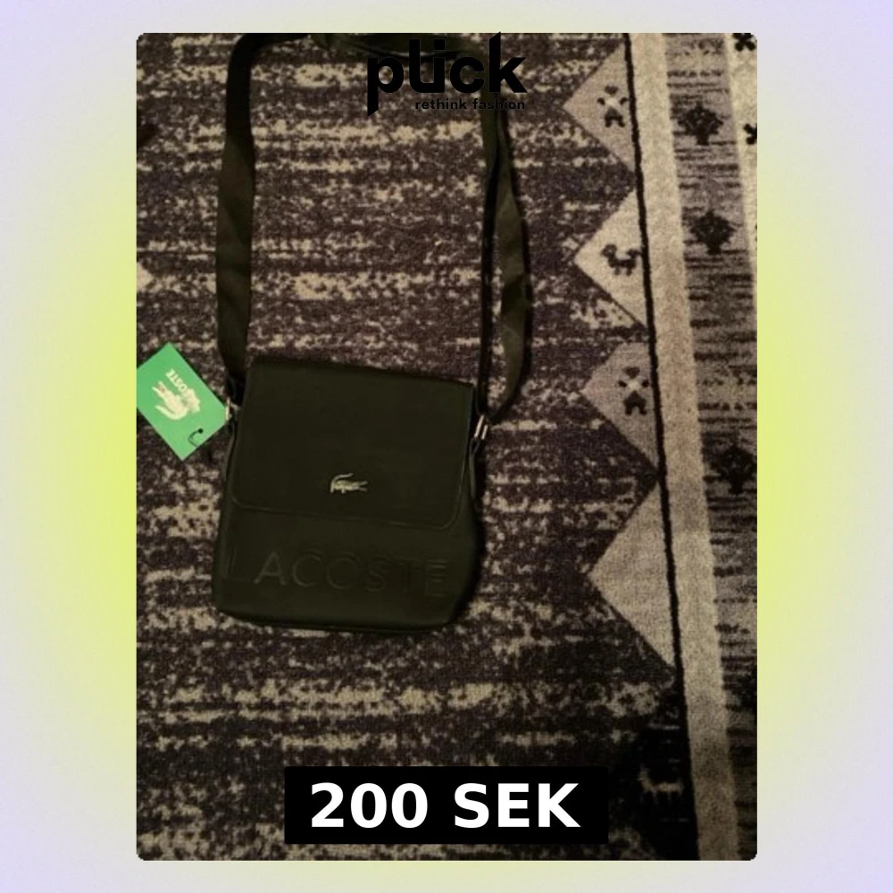Snygg svart axelväska från Lacoste med präglad logga på framsidan och klassisk krokodil-detalj. Väskan har justerbar axelrem och stängs med magnetknappar. Perfekt för att bära det viktigaste med stil.
