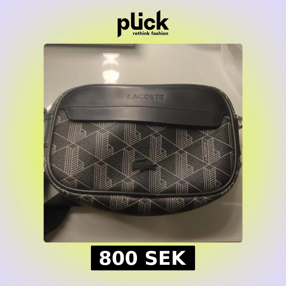 Snygg svart axelväska från Lacoste med geometriskt vitt mönster och präglad logga framtill. Väskan har justerbar rem och dragkedja upptill. Tillverkad i slitstarkt syntetmaterial med stilren design och diskreta detaljer.