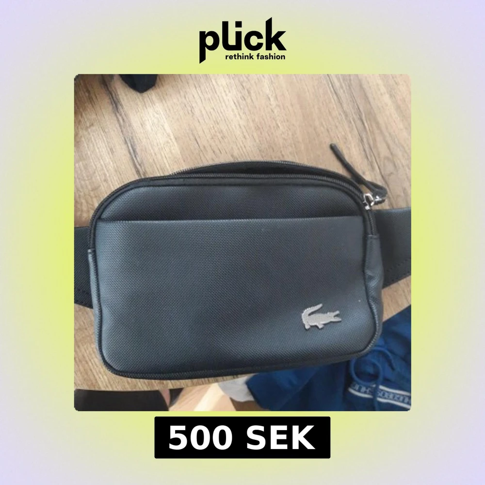 Snygg svart magväska från Lacoste med klassisk krokodil-logga i metall på framsidan. Väskan har en stilren, rektangulär form och är tillverkad i slitstark syntet med dragkedja upptill. Perfekt för att bära det viktigaste när du är på språng.