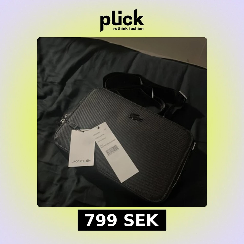 Snygg svart axelväska från Lacoste med stilren design och präglad yta. Väskan har justerbar axelrem, silverfärgad dragkedja och ett diskret Lacoste-logo framtill. Materialet är syntet med struktur, och insidan har en praktisk ficka med dragkedja.