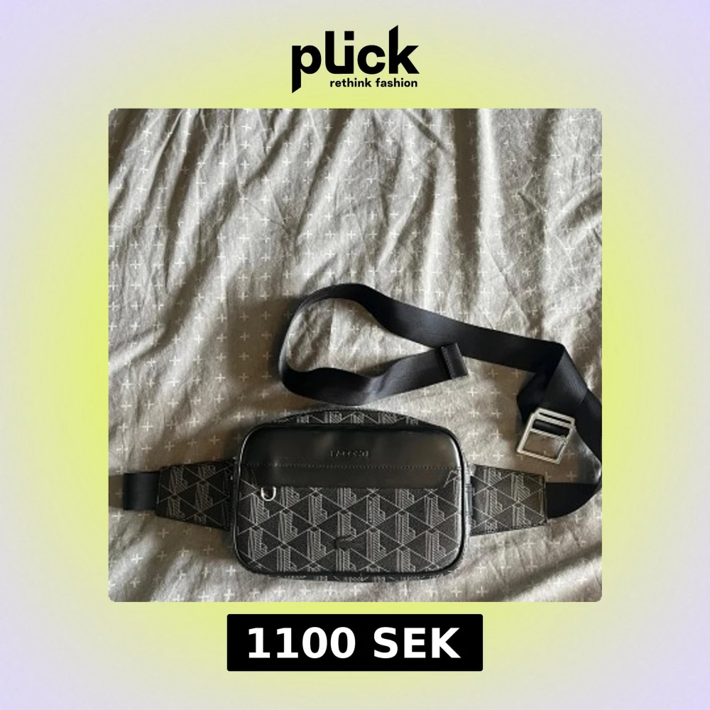Snygg svart magväska från Lacoste med geometriskt mönster och silverfärgade detaljer. Väskan har justerbart band med metallspänne, dubbla dragkedjor och präglad Lacoste-logga framtill. Perfekt för att bära det viktigaste med stil. Använd ett fåtal gånger, hör av er vid fler frågor. Pris kan diskuteras vid snabb affär.