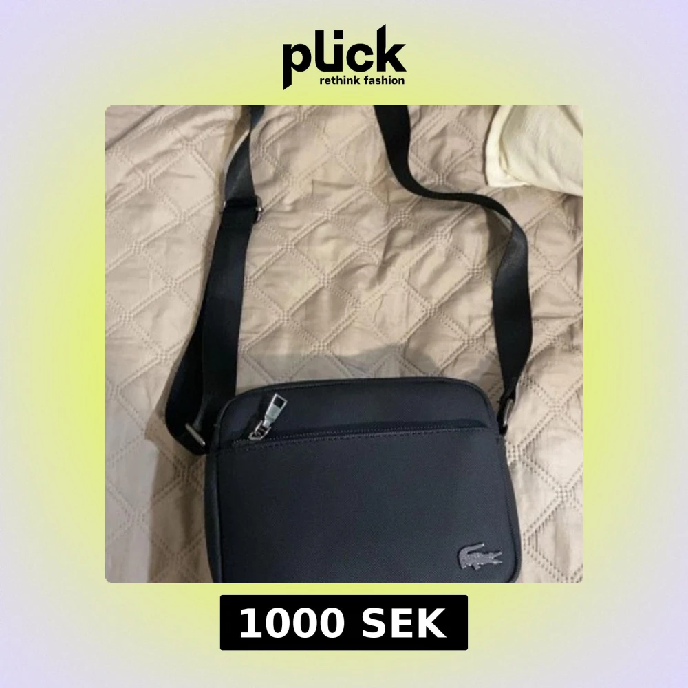 Snygg svart axelväska från Lacoste med klassisk krokodil-logga i metall på framsidan. Väskan har justerbar rem, flera dragkedjefack och är tillverkad i slitstark syntet. Perfekt storlek för mobil, plånbok och andra essentials.