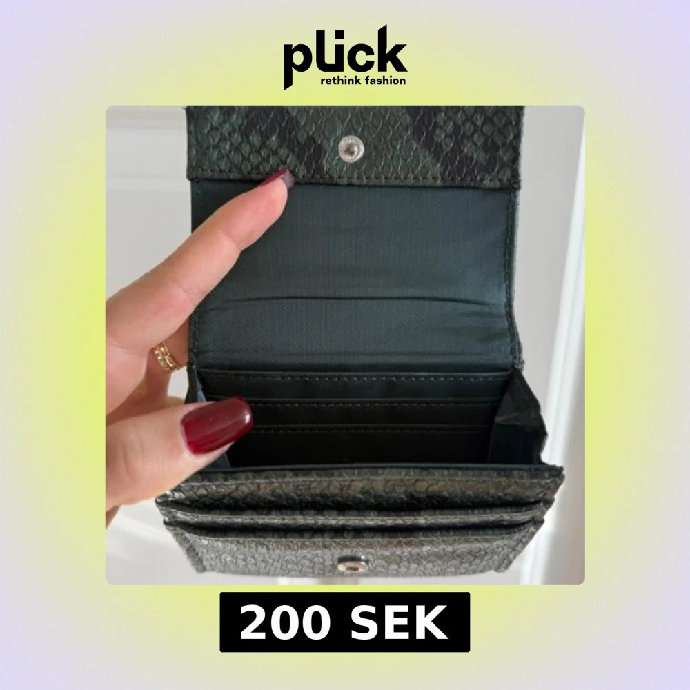 Snygg grön plånbok från dondonna med ormmönstrad yta och praktisk knappstängning. Köpt för ungefär 800 !