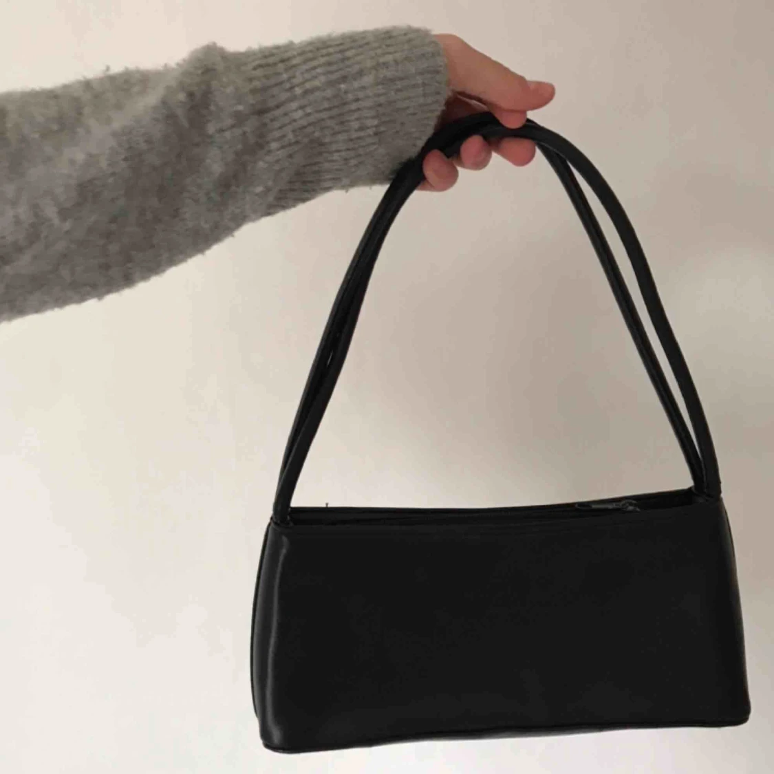 Trendig, supersnygg väska i läder från 90-talet! Jättefint skick och bra kvalité, stängs med dragkedja och har ett mindre fack inuti. Frakt inräknad i priset, kan mötas upp i Nyköping!