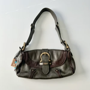 Mörkgrön väska i äkta skinn. Köpt dyrt. Höjd: ca 17 cm. Bredd: 29 cm. Djup: 4 cm 💘