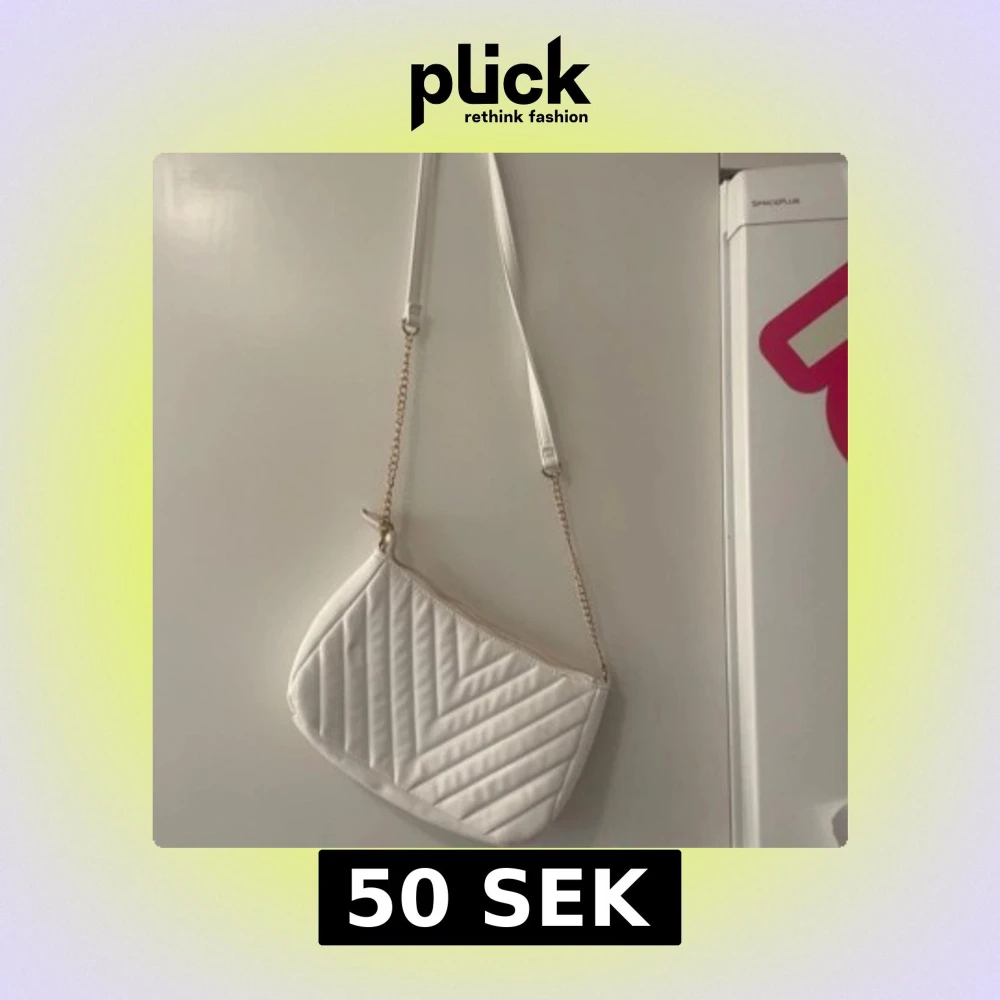 Snygg vit axelväska med quiltat mönster och dragkedja. Väskan har en kedja som axelrem vilket ger en stilren look. Perfekt för att bära med sig det viktigaste.