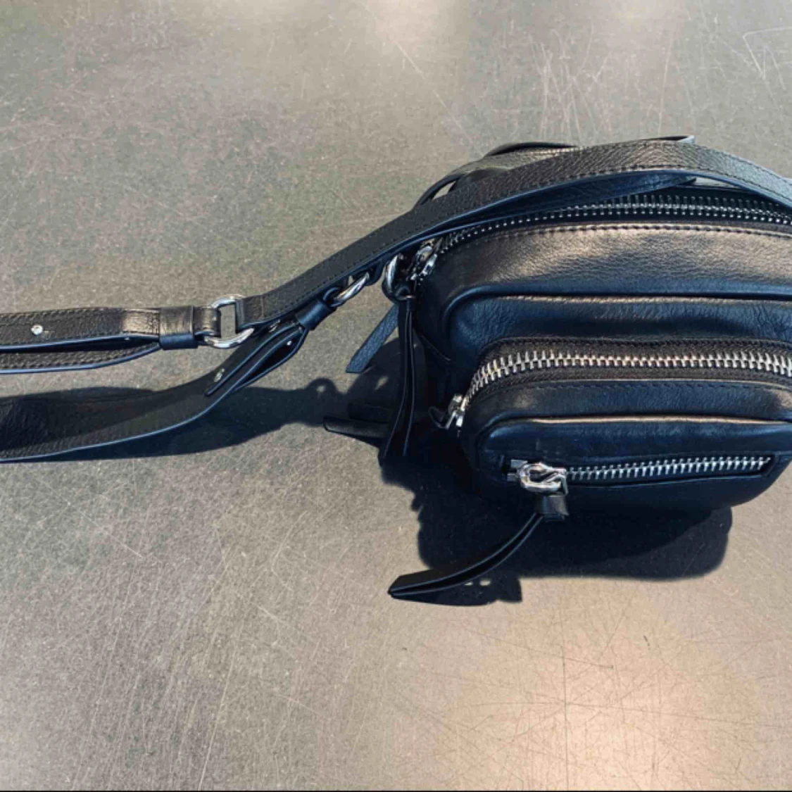 Säljer nu en knappt använd axelväska i skinn från & Other Stories. 5 olika fack med blixtlås till alla. Perfekta väskan för festen/kameran eller bara en cool vardagsväska. Inga synliga tecken på användning, som ny!